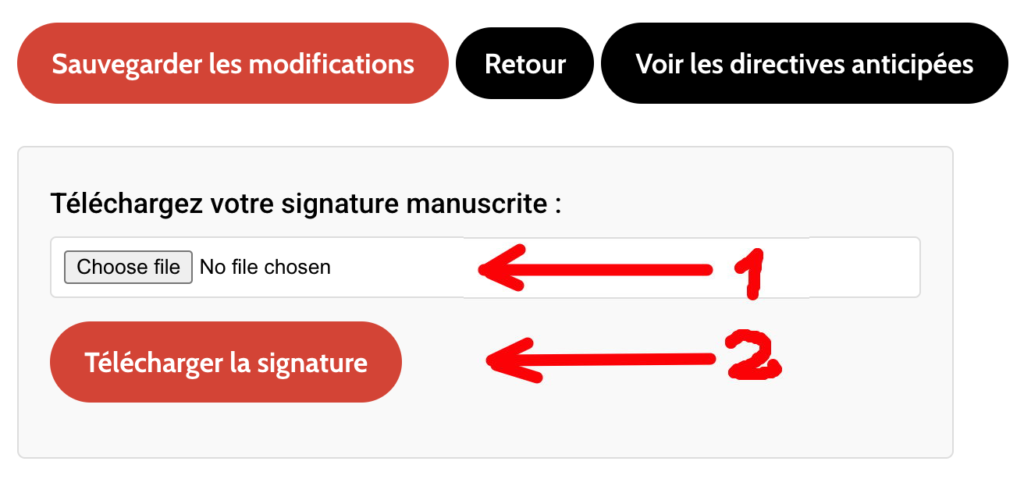 Après avoir vu le message « Signature téléchargée avec succès », vos directives anticipées sont à jour.
